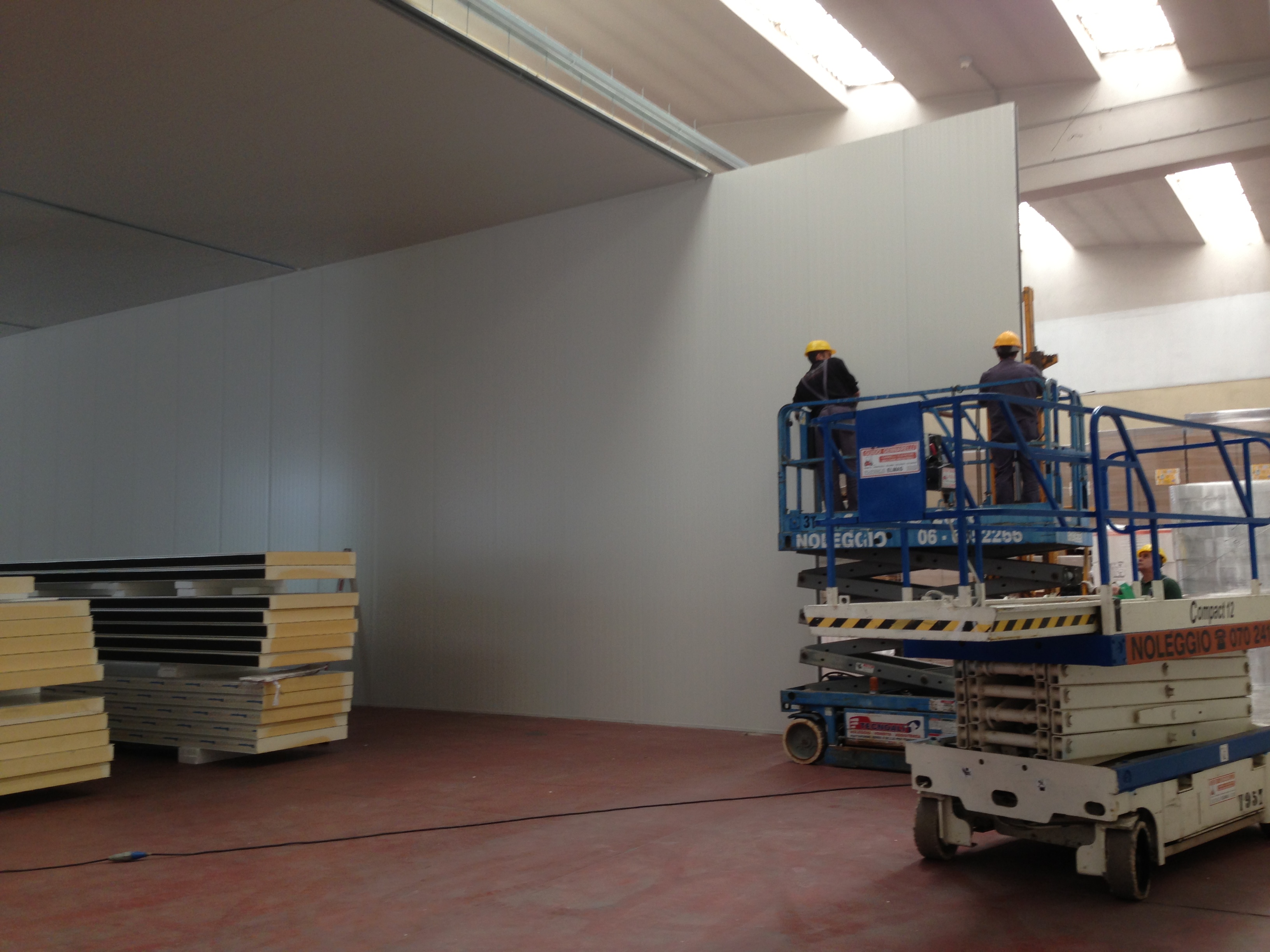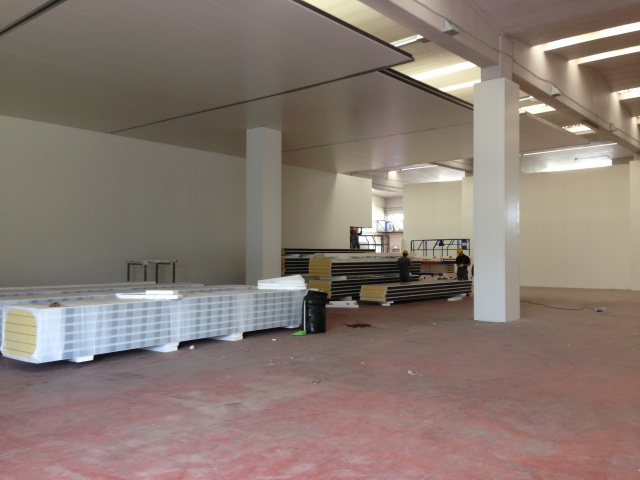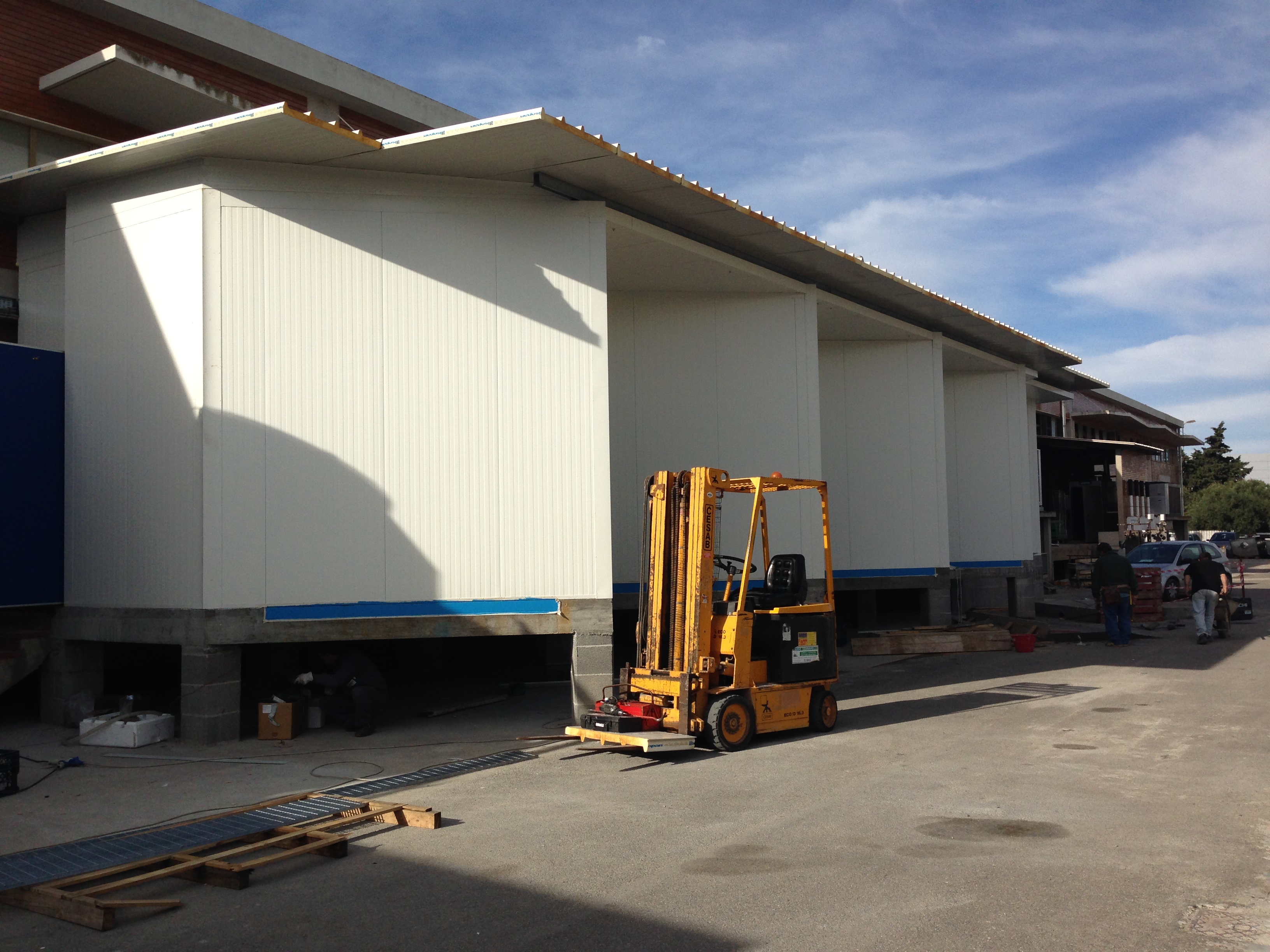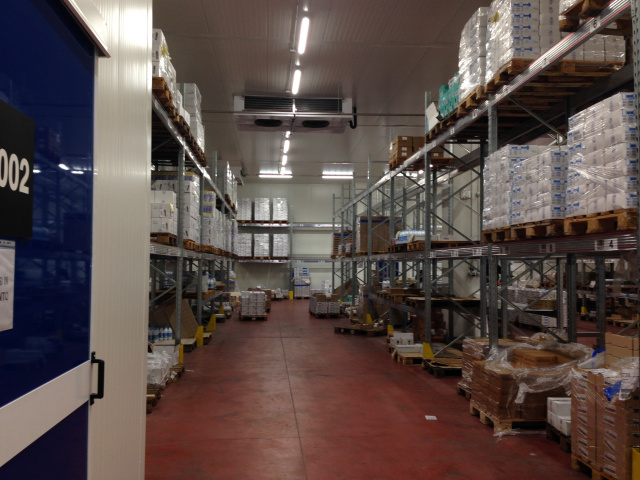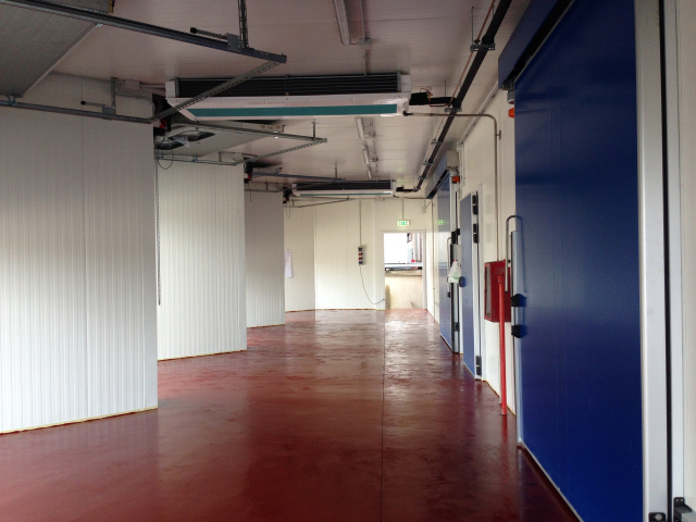 Realizzazione di una cella frigorifera per il carico/scarico merci e di una banchina di carico per la Casearia Podda gruppo Granarolo. La cella ha dimensioni di circa 30x20 metri ed una altezza di 6 metri mentre la banchina di carico è di circa 20x6 metri; gli evaporatori sono alimentati da 3 unità motocondensanti con circuiti separati in modo da poter garantire la costanza del freddo. La fornitura include pannelli, tubazioni, impianti, evaporatori, strutture metalliche, porte frigorifere e banchine di carico.