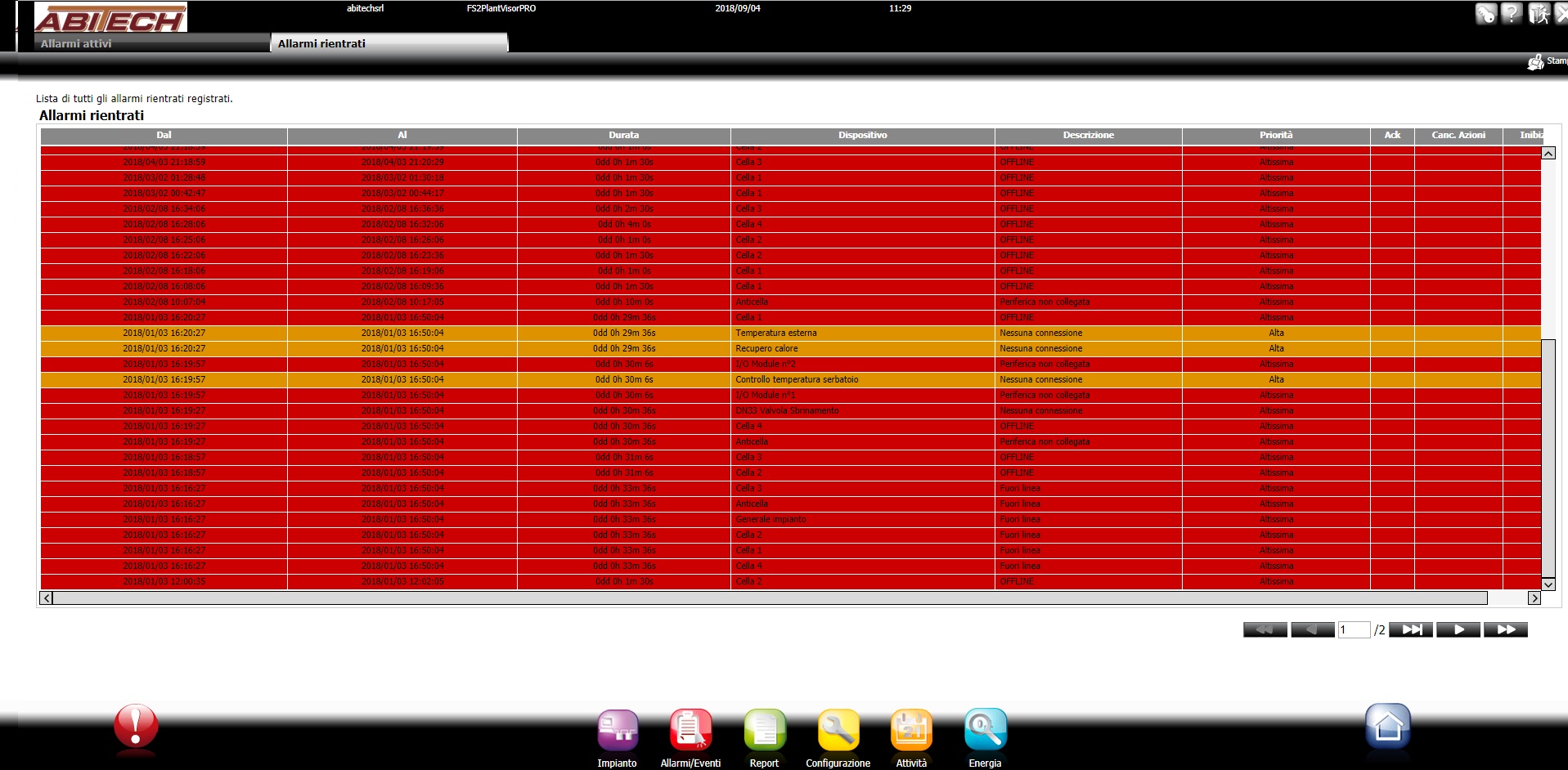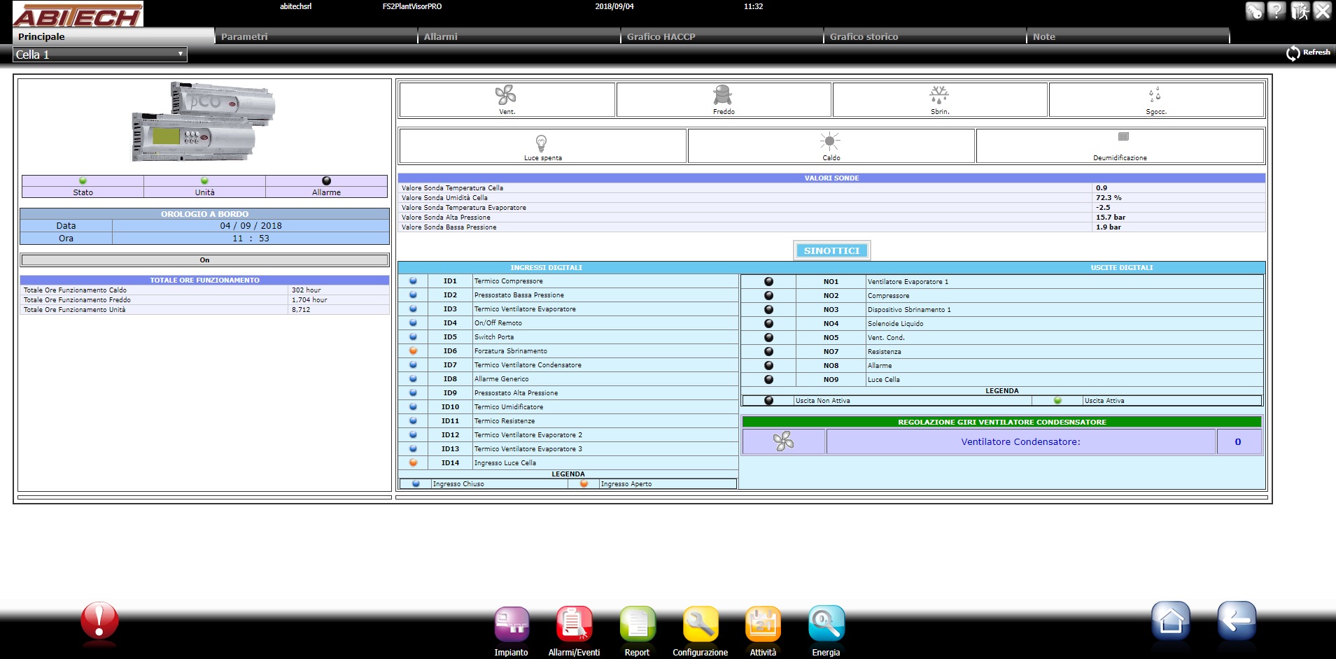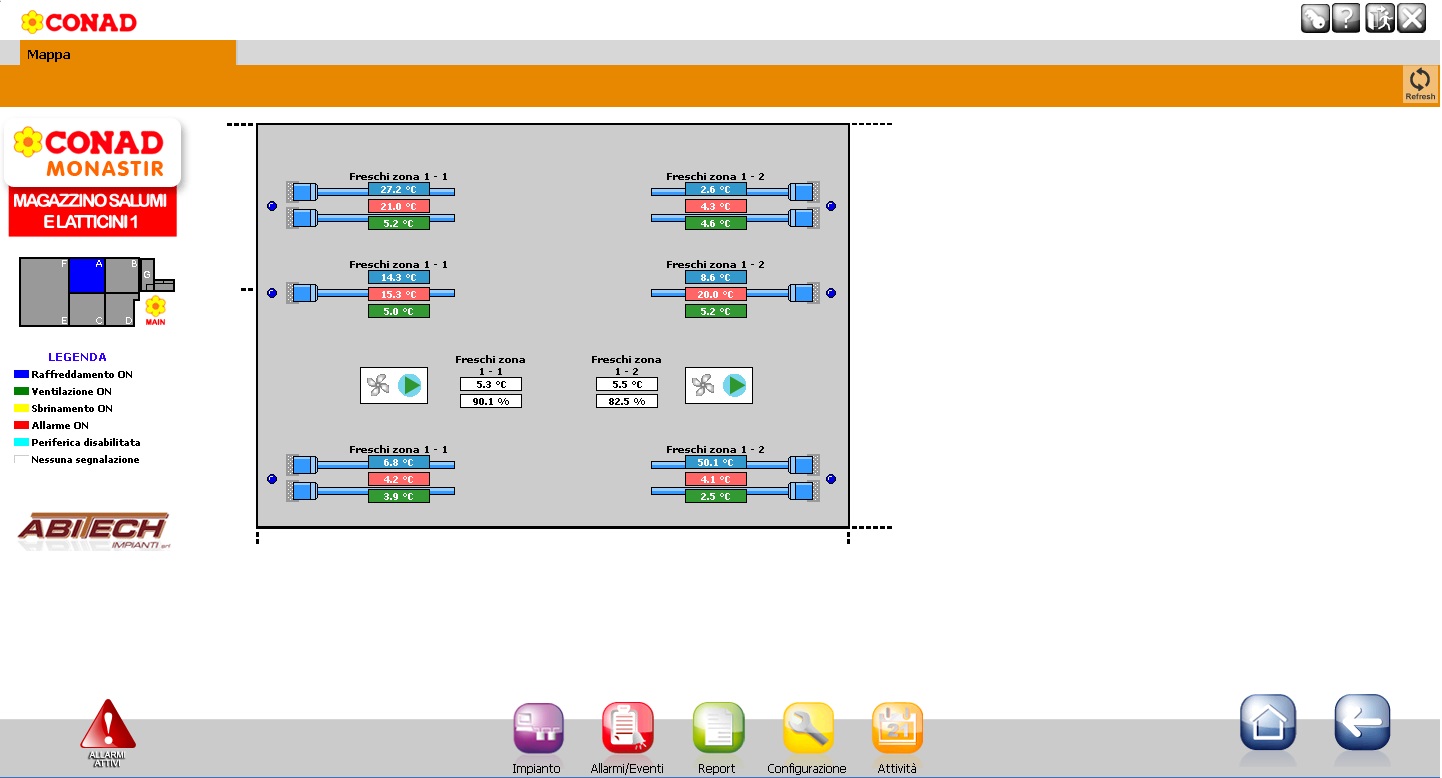 La telegestione elaborerà in automatico un grafico di temperatura, umidità, pressioni di lavoro e consumi elettrici come quelli nelle foto; da questi grafici è possibile dunque vedere, ad esempio, quale temperatura c'era in cella il giorno X alle ore Y.